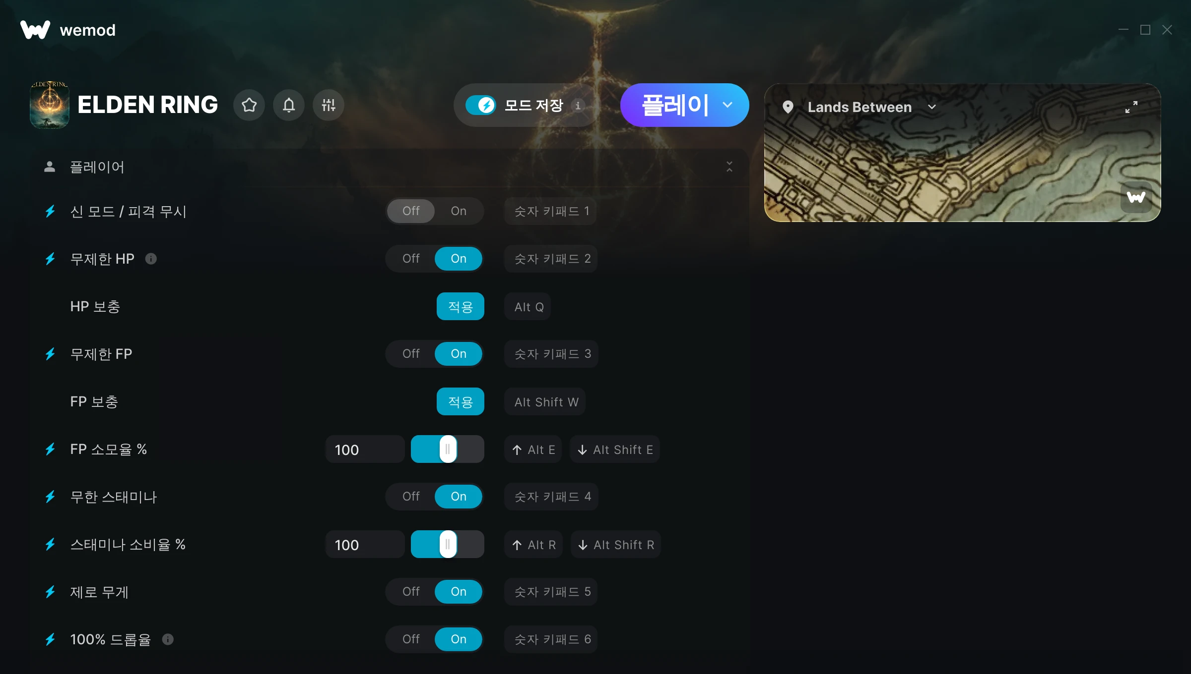 Thank you so much for the mods. Because i'm so tired play Elden Ring without Mod. And i was finished and completely the game, beat Elden Beast (Final Boss) at The Lands Between and beat Radahn Consort of Miquella (Final Boss) at DLC Shadow of The Erdtree. And now, i will enjoy this game with WeMods. Once again, thank you so much for the mod.